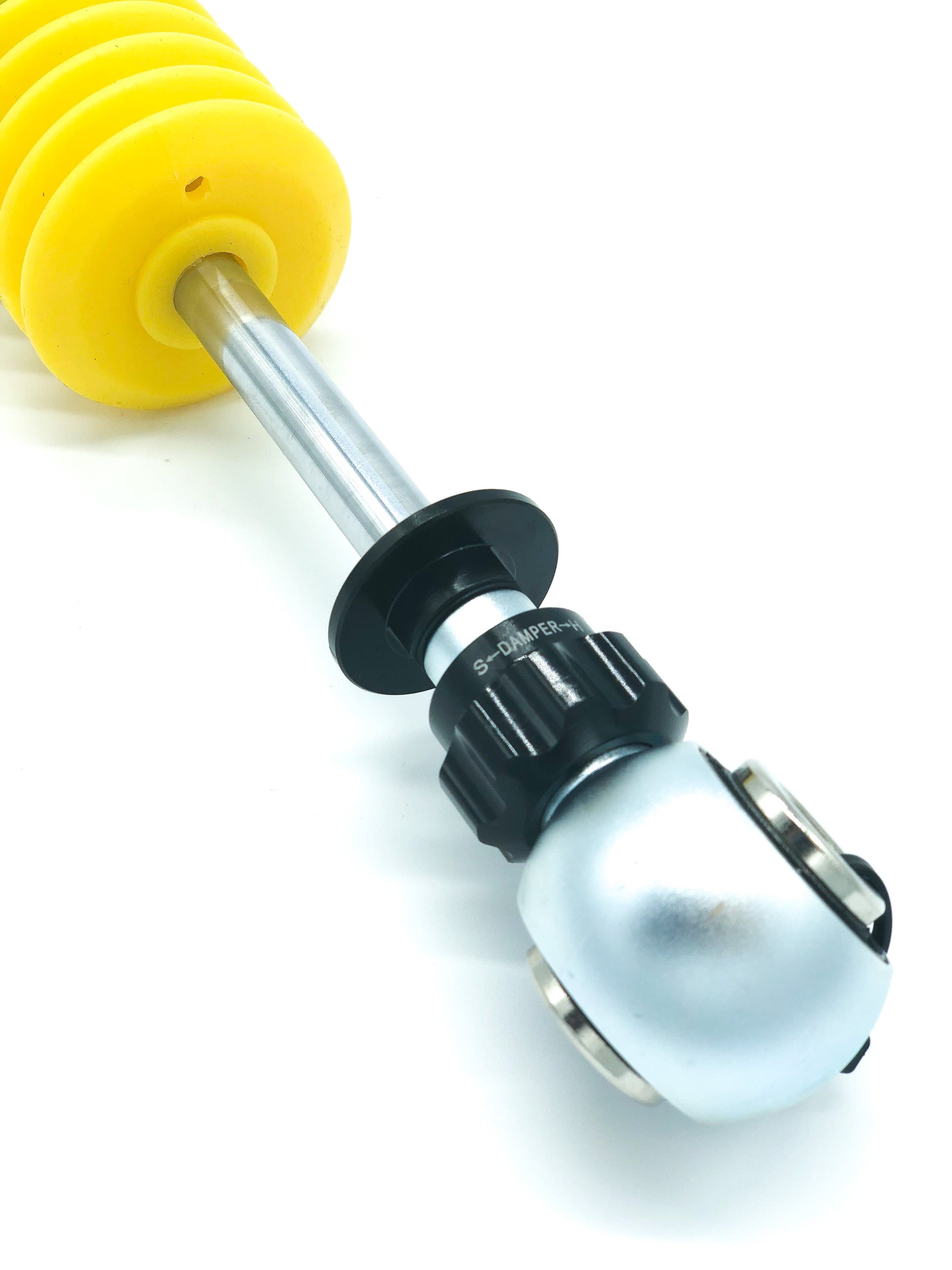 A steel lower bracket is utilized for MacPherson strut type to increase rigidity for safety (where applicable). For most MacPherson strut models, the brake line bracket is welded manually perfectly to the steel lower mount. A high quality forged alloy aluminum lower bracket is used for Double-A Arm strut type (where applicable). The steel/aluminum lower bracket is processed with electroplated/ anodized surface treatment to prevent corrosion or rust in the harsh conditions of motorsport. The vehicle ride height can be adjusted easily with the lower bracket by winding up and down to drop and raise. With the lower bracket, it allows maximum suspension travel without affecting the shock stroke.