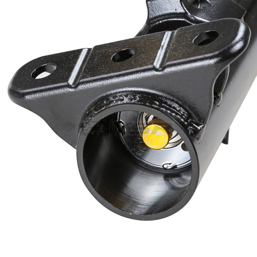 For suspension systems with front or rear MacPherson style struts, the damper will be provided with an inverted monotube design which is utilized to reduce the effect upon the damping oil and shock piston resulting from high temperature from the brake system. The inverted damper also can resist lateral stress more efficiently. The inverted damper reduces unsprung weight for quicker suspension response. For any suspension system with featuring a rear A-Arm suspension type, the rear damper shaft has been thickened to 20mm, which is able to support more side force stress, and ensure the vehicle will remain more controllable. In addition, the thickened damper shaft is more resistant to damage. The 55mm steel shock body is coated with a zinc plating for exceptional corrosion resistance.